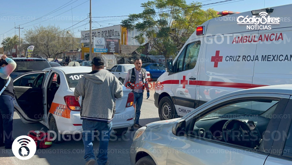 la pasajera del taxi fue trasladada al hospital por Cruz Roja Mexicana.