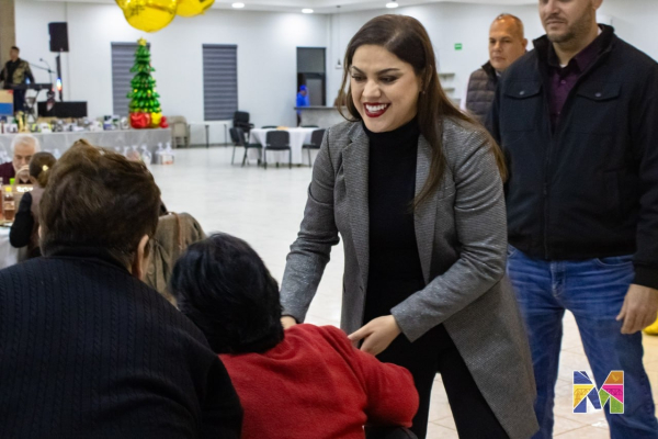 "Esto es solo un pequeño detalle de agradecimiento por todo lo que nos han enseñado nuestros queridos abuelitos y abuelitas”, expresó la alcaldesa de Meoqui, Miriam Soto, durante la posada navideña organizada por el Gobierno Municipal y el DIF, donde convivió con integrantes de los grupos de la tercera edad y maestros jubilados del municipio, reiterando su compromiso de seguir apoyando a este importante sector de la población, contando con la asistencia de 160 personas, pertenecientes a 9 grupos de la tercera edad del DIF, así como 2 grupos de maestros jubilados, tanto estatales como federales, quienes disfrutaron de una tardeada-baile, cena, música en vivo y regalos.