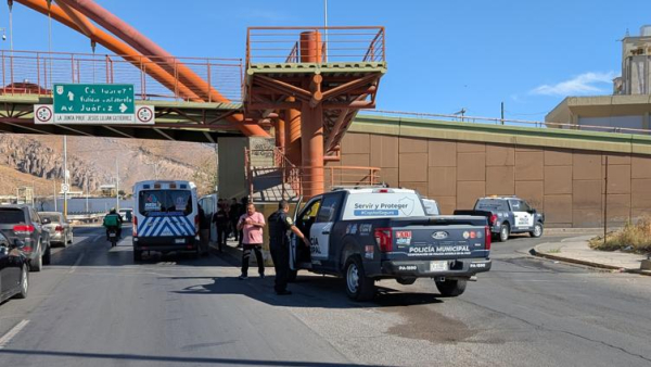 Rescata DSPM a un hombre de 30 años que intentó saltar del puente peatonal en Av. de la Junta y Teófilo Borunda; fue atendido por paramédicos tras discusión con su pareja.