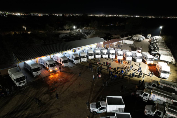 H. Ciudad de Chihuahua, Chih., a 6 de enero de 2026.- El alcalde Marco Bonilla hizo entrega al personal de limpieza de la Dirección de Servicios Públicos Municipales, 15 camiones nuevos para la recolección de basura habitacional, 13 pick ups medianas y tres con capacidad de 3.5 toneladas para la limpieza de calles y avenidas, como parte del compromiso adquirido el año pasado para mejorar el servicio de limpia de la ciudad.