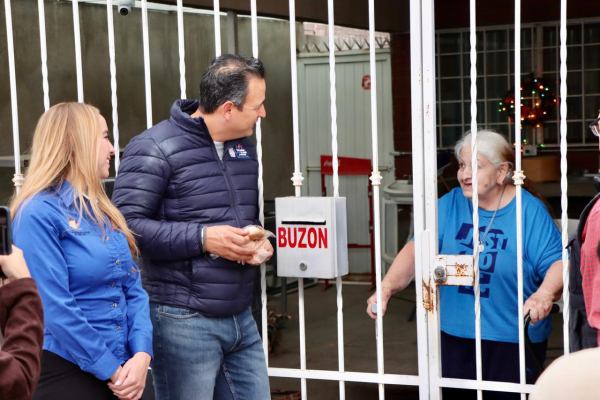 Chihuahua, Chih.– En el marco del Día de Reyes Magos, la diputada del Partido Acción Nacional (PAN), Carla Rivas, junto al alcalde, Marco Bonilla, recorrieron la colonia Rosario, donde convivieron con las y los vecinos y compartieron la tradicional Rosca de Reyes, además de tamales.