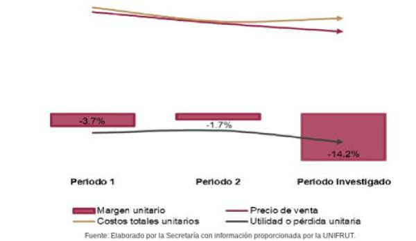 “La rama de producción nacional reportó pérdidas a nivel unitario, las cuales incrementaron 10.5 puntos porcentuales en el periodo analizado, al pasar de un margen de -3.7% en el periodo 1 a -14.2% en el periodo investigado”.