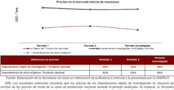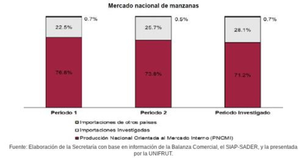 Para abrir la investigación, analizaron datos de las ventas de manzana mexicana y encontraron pérdidas entre abril del 2024 y marzo del 2025, lo cual demostraría daño a la producción nacional debido a las crecientes importaciones provenientes desde Estados Unidos.