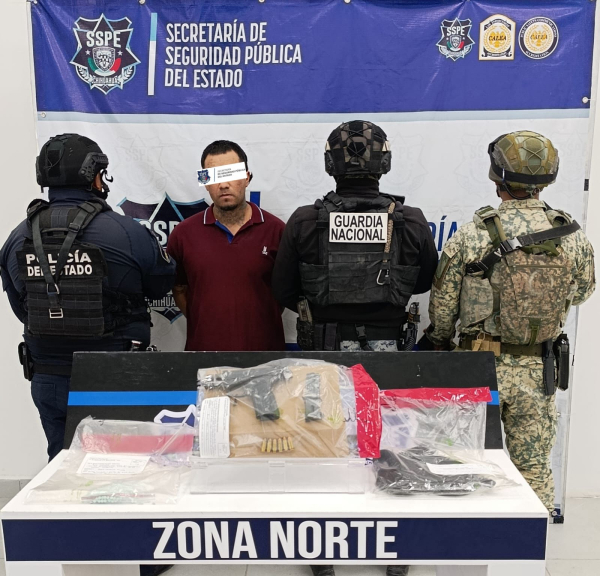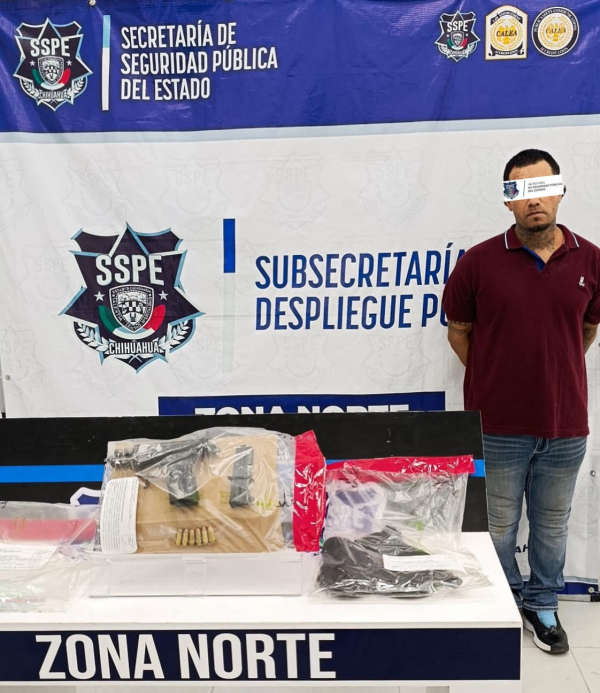 La Secretaría de Seguridad Pública del Estado, a través de la Policía de Despliegue, realizó la detención de un masculino por los delitos de violación a la Ley Federal de Armas de Fuego y Explosivos, así como delitos contra la salud, esto en Ciudad Juárez.