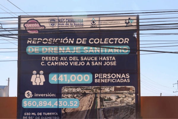 Agua y Saneamiento de Juárez (J+), supervisó los avances del Colector Viñedos y de la presa Filtro II, mediante un recorrido encabezado por los directores de los organismos, Mario Mata y Marco Licón, respectivamente.