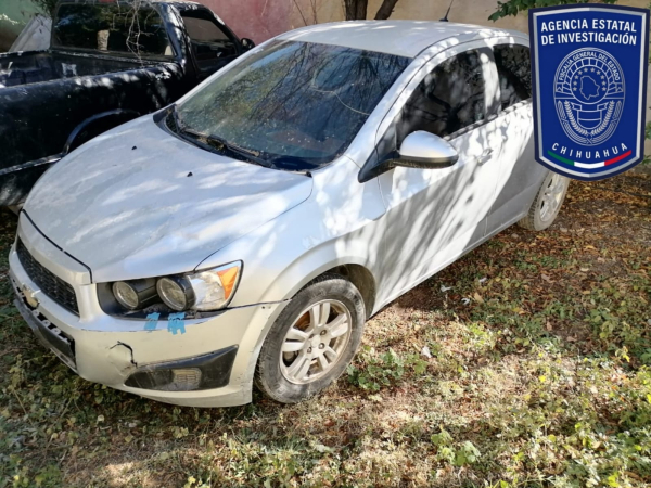 De manera simultánea, en la carretera Balleza - Puerto Justo, los policías investigadores encontraron abandonado un automóvil de la marca Chevrolet, línea Sonic, modelo 2016, de color gris, robado el 22 de marzo de 2022, en la ciudad de Chihuahua.