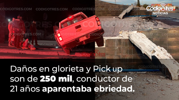 Delicias. – El agente vial, Eduardo Ríos, brindó la versión oficial del hecho ocurrió en la madrugada en donde una pick up se impactó contra la glorieta Gómez Morín.
