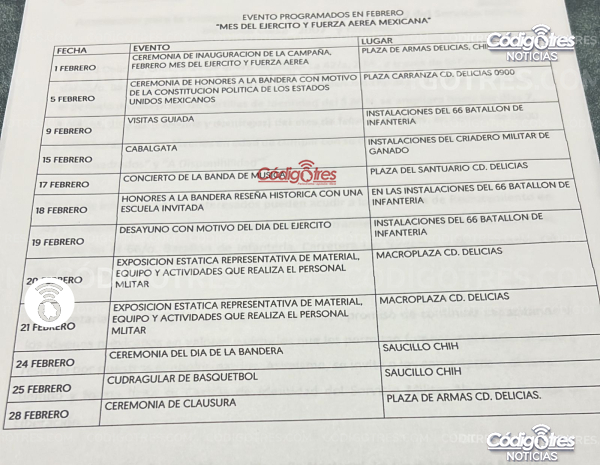 Delicias. – El Ejército y Fuerza Aérea Mexicana durante todo el mes de febrero tendrán una serie de actividades, para acercar a la ciudadanía a las acciones que ellos realizan y mostrarles el compromiso que tienen con el país.