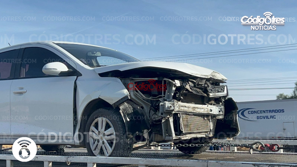 Delicias. – El conductor de un automóvil Chevrolet línea Aveo se impactó contra una traila al incorporarse sin precaución a la carretera federal 45.