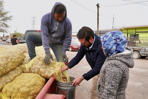 Delicias, Chih.– Como parte de una estrategia de apoyo directo a las familias que más lo necesitan, el coordinador estatal de regidores, Mario Mata, realizó la entrega de alimento básico (papa) en distintas colonias rurales del municipio, fortaleciendo la alimentación y contribuyendo a la economía de los hogares beneficiados.