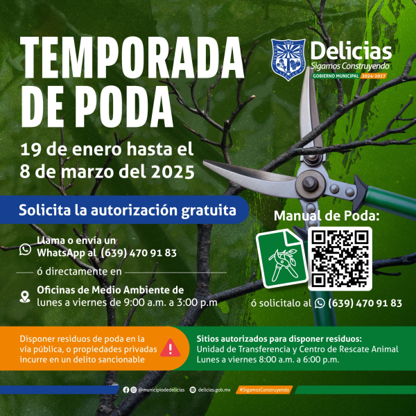 El lugar de los residuos de poda no son terrenos baldíos o la casa de otros vecinos, la responsabilidad de cada dueño de un árbol es disponer correctamente de esta basura, por lo que debe ser llevada a la Unidad de Trasferencia o al Centro de Rescate Animal de lunes a viernes de 8:00 am a 6:00 pm, el servicio no tiene costo. De lo contario los ciudadanos podrían ser acreedores a alguna sanción, afirmó Carlos Rodríguez, director de Servicios Públicos Municipales.