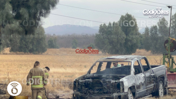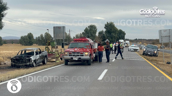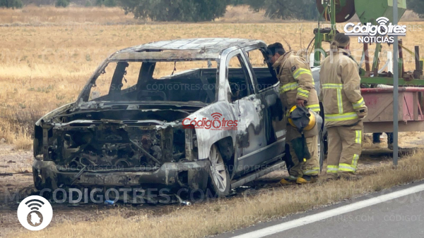 Saucillo.- Una pick up prendió en llamas en plena carretera federal 45 de sur a norte, es decir de Saucillo a Delicias pasando la caseta.