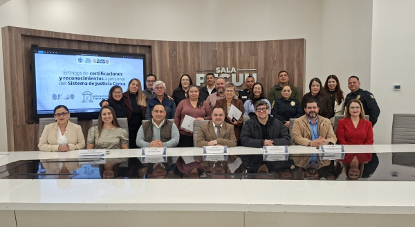Indicó que además de la entrega de certificaciones a 40 funcionarios, dos juezas cívicas recibieron un reconocimiento por apoyar en el desarrollo de un estándar ISO para la casa certificadora ABC, y tiene que ver con la realización de audiencias públicas.