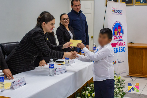 La alcaldesa de Meoqui, Miriam Soto, realizó la entrega de becas del programa “Napawika Benevo, Aprendemos Juntos”, el cual beneficia a más de 40 niñas y niños de la Escuela Primaria Indígena del municipio, con el objetivo de fortalecer la educación y garantizar la igualdad de oportunidades.