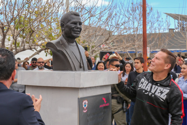 Previo a la conferencia, se llevó a cabo la develación de un busto a las afueras del gimnasio de box Hermanos Delgado, con la presencia de pugilistas de distintos gimnasios de la ciudad, así como de Fidel Villanueva, uno de los organizadores del evento e integrante de la organización Anapromex, en un acto que simbolizó el reconocimiento a la trayectoria del campeón mexicano.