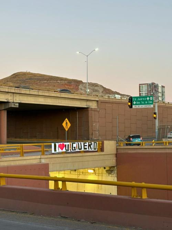 El día de San Valentín comenzó con una muestra de cariño, un mensaje colocado en periférico De la Juventud y avenida La Cantera de una joven para su novio, uno de los cruces más importantes de la ciudad de Chihuahua.