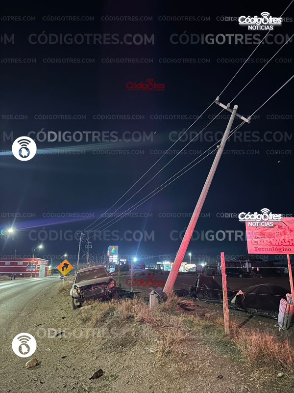 Dejó 80 mil pesos en daños materiales entre su vehículo, un poste de concreto propiedad de la CFE y en un señalamiento gráfico de velocidad propiedad del municipio.