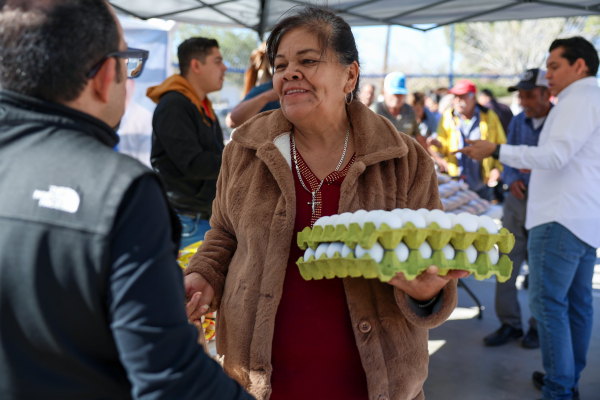 Desde temprana hora, vecinos de la colonia acudieron al punto de venta para adquirir huevo, frijol y queso a precios solidarios, en un esfuerzo que busca aliviar el gasto semanal en los hogares y brindar un respaldo tangible ante el aumento constante en los productos básicos.