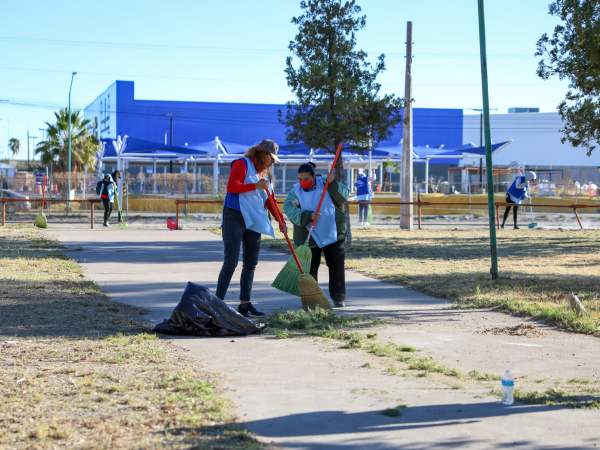 Con el objetivo de fortalecer el compromiso social y contribuir a la mejora de los espacios públicos, la empresa Walmart, en coordinación con el Gobierno Municipal de Delicias y el Club de Leones, llevó a cabo una jornada de voluntariado en la Plaza Ferrocarril, ubicada a un costado del centro comercial donde próximamente abrirá sus puertas la nueva sucursal de la cadena comercial.