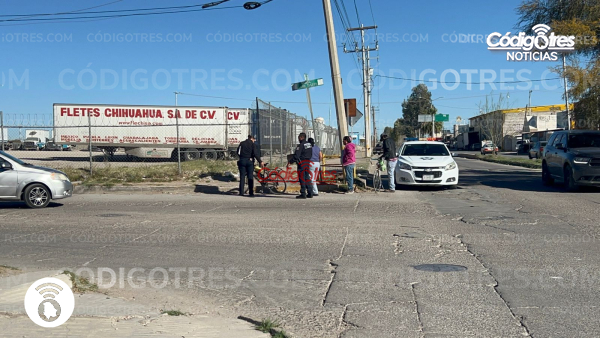 Delicias. – 2 ciclistas fueron chocados por un Chevrolet línea Aveo en la intersección de la Av. 10 sur y Av. Plutarco Elías Calles, por fortuna, no tuvieron lesiones graves.