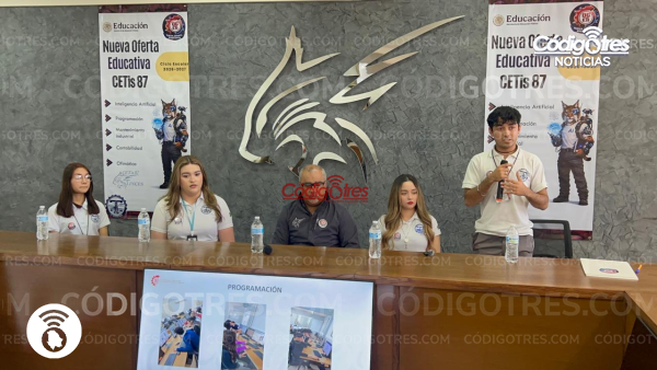Delicias. – Esta mañana por medio de una rueda de prensa autoridades y estudiantes del CETis No. 87 presentaron la nueva oferta educativa para el ciclo escolar 2026-2027. La cual responde a las necesidades actuales, además resaltaron que sus instalaciones están bien equipadas para hacer amena la estancia de los estudiantes.