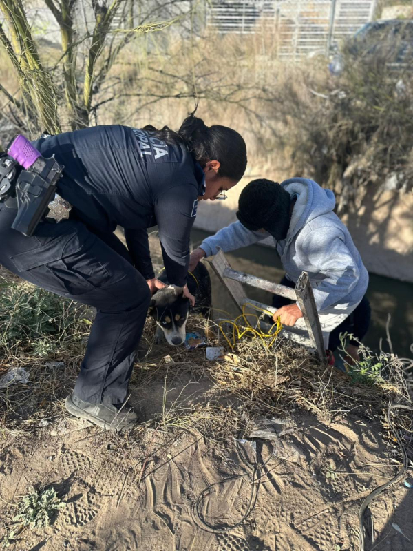 De manera inmediata, los oficiales acudieron al lugar señalado, en donde se entrevistaron con una ciudadana quien manifestó que al pasar por el canal ubicado en dicho cruce observó a un perro de color negro en el interior, intentando salir por sus propios medios.