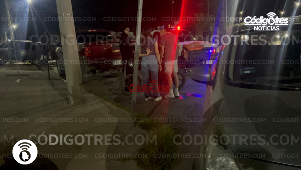 Un accidente vial se registró en el cruce de la avenida Río San Pedro y avenida Manzanos, donde se vieron involucrados una motocicleta color rojo y un vehículo Nissan Versa color gris.