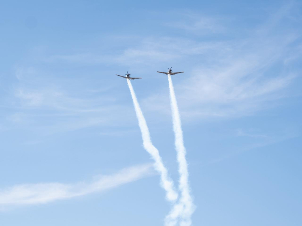 Uno de los momentos más emotivos del acto cívico se vivió cuando dos aviones de la Fuerza Aérea Mexicana sobrevolaron el Gran Estadio de Delicias, generando sorpresa, emoción y aplausos entre las y los estudiantes. El sobrevuelo despertó un ambiente de orgullo y entusiasmo entre los niños, quienes observaron con asombro esta muestra del compromiso de las fuerzas armadas con México.