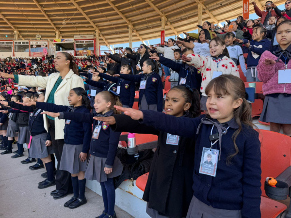 Con la participación de 2 mil 500 estudiantes de tercer grado, pertenecientes a 72 planteles educativos, la totalidad de este nivel en el municipio, el Gobierno Municipal de Delicias conmemoró el Día de la Bandera con un acto cívico celebrado en el Gran Estadio Delicias, en una jornada que fortaleció los valores cívicos y el amor por los símbolos patrios entre la niñez.