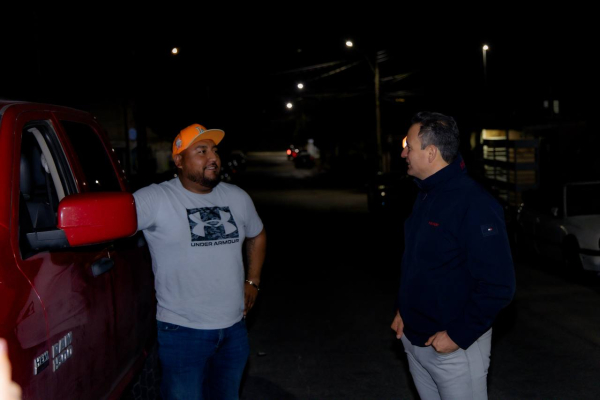 H. Ciudad de Chihuahua, Chih., a 25 de febrero de 2026.- El alcalde Marco Bonilla realizó la noche del martes un recorrido por calles de la colonia Zootecnia para supervisar el funcionamiento de las nuevas luminarias LED instaladas recientemente, así como para dialogar con vecinos sobre temas de seguridad y servicios públicos.