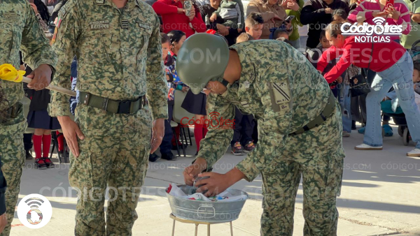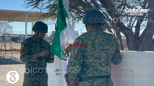 Delicias. - Esta mañana el Preescolar Gabriel Teporaca realizó un acto cívico para despedir conforme a la ley al lábaro patrio de la bandera nacional. Reafirmando los valores de identidad, respeto y amor a la patria. Siendo acompañados por personal del 66 Batallón de Infantería.