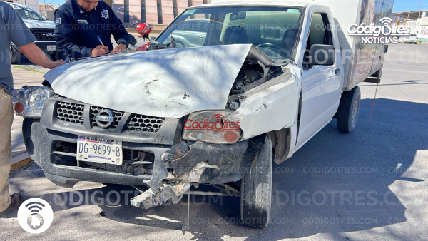 Un aparatoso accidente vial se registró en el cruce de la avenida Agricultura y avenida Río Conchos, luego de que el conductor de un vehículo Kia no respetara la preferencia de paso e impactara de manera frontal a una camioneta Nissan FT300.