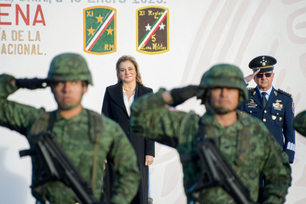 La gobernadora Maru Campos asistió como invitada especial a la toma de protesta del general de brigada, Diplomado de Estado Mayor, Israel Caro Rodríguez, como nuevo coordinador estatal de la Guardia Nacional en Chihuahua.