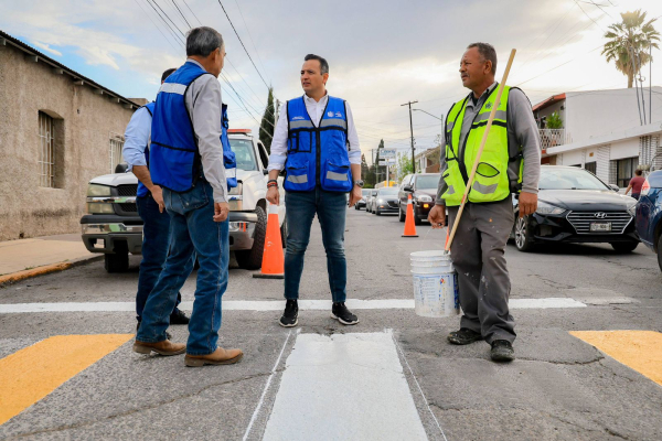 El alcalde Marco Bonilla supervisó los trabajos de bacheo que se realizan en la colonia Santo Niño, como parte de las acciones permanentes del Gobierno Municipal para mejorar las condiciones de las vialidades y brindar traslados más seguros y cómodos a las familias chihuahuenses.