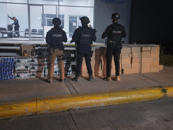 En el mismo operativo se localizaron cajas con bebidas alcohólicas abandonadas, contabilizándose 4,416 botellas de distintas marcas, así como 209 latas de cerveza marca Bud Light.