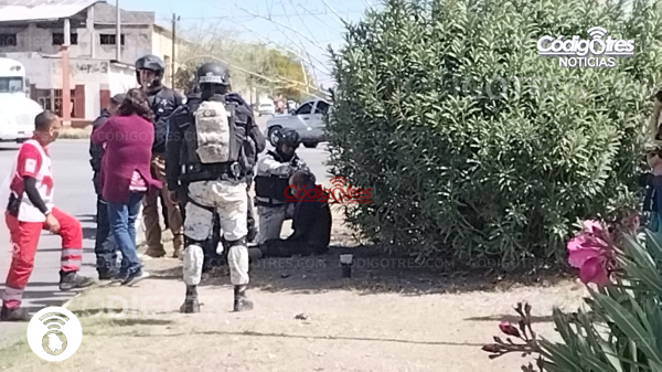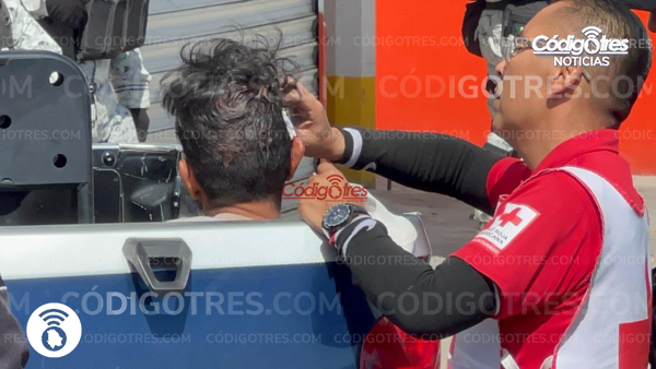 Por el lugar pasaba la Guardia Nacional por lo que con un botiquín intervinieron para curar al lesionado y en el aseguramiento del otro sujeto en lo que llegaban elementos de Seguridad Pública. Quienes hicieron una fuerte presencia con 4 unidades motorizadas y una patrulla en la que se llevaron al sospechoso.
