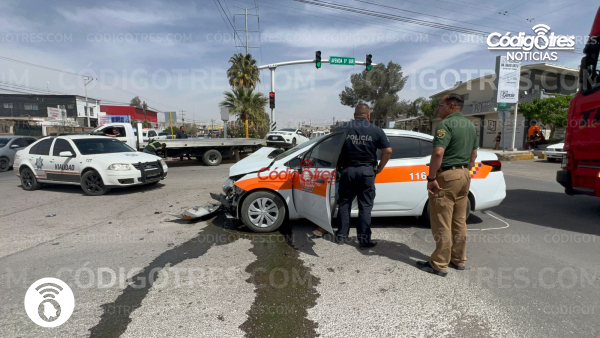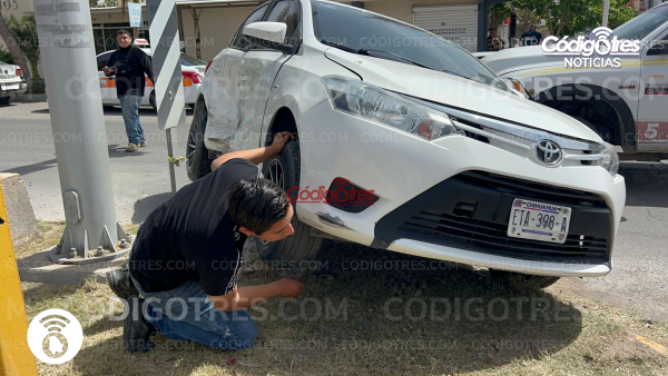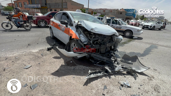 El vehículo Toyota se estrelló contra una estructura de concreto del camellón divisor de la vialidad, mientras que el taxi quedó a la mitad de la calle.