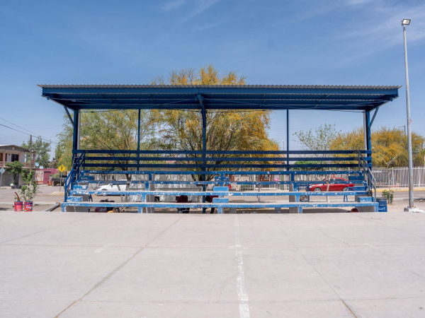 La Dirección de Obras Públicas de Delicias avanza en la fase final de la construcción de una techumbre sobre gradas en la cancha de la plaza principal de la colonia Campesina, informó su titular, Alfonso Rodríguez Porras. El proyecto forma parte de las obras ejecutadas a través del esquema de presupuesto participativo.