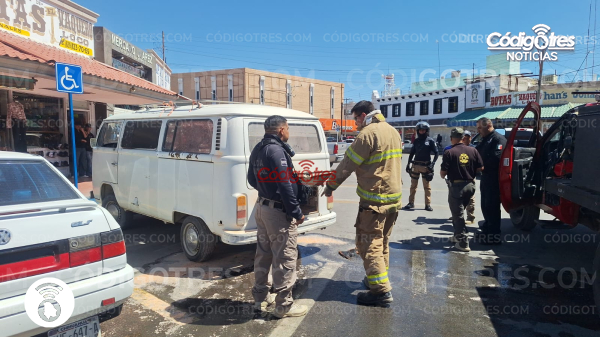 Delicias. – El propietario de un automóvil Volkswagen línea Combi de modelo atrasado vivió momentos de tensión a la 1 pm cuando de manera repentina su motor sufrió un conato de incendio mientras se encontraba en el círculo del Mercado Juárez, frente a la dulcería Casa Portillo.