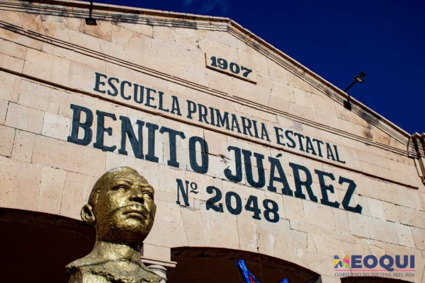 En su honor luego de 15 años de su estadía en el municipio, se levanta la primera Escuela Primaria en la región, con su nombre, la cual sigue funcionando como institución educativa, donde se encuentra su busto, un recuerdo del decreto y un mural pintado en el auditorio por el artista plástico meoquense José Soto, en el que plasma al distinguido Benemérito de las Américas y la educación.