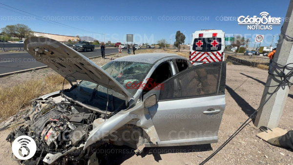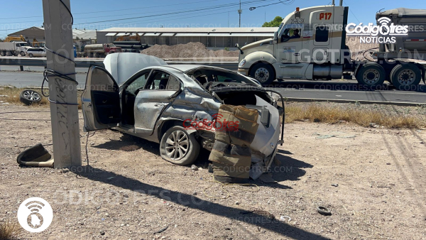 Delicias.- La curva que conecta la carretera federal 45 con el puente del Cielo Vista estuvo a punto de cobrar otra vida, luego de que el conductor de un automóvil marca Renault línea Fluence tuviera una aparatosa volcadura.