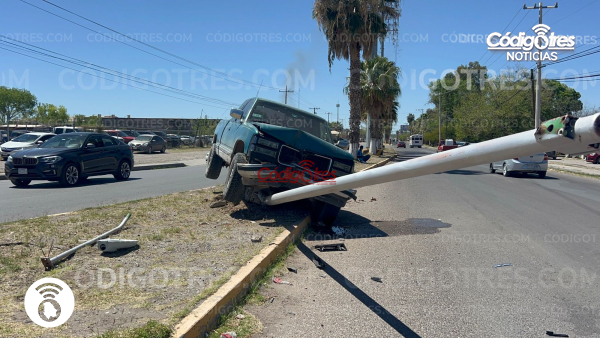 El agente vial, Oscar Soto, indica que la pick up marca Ford línea Silverado de modelo 1994. Es propiedad de un taller mecánico y a un joven de 17 años lo mandaron a un mandado, sin embargo, de manera repentina perdió el control del vehículo y se impactó contra el poste de alumbrado público, arrancandolo de sus cimientos.