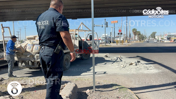 De acuerdo con la información proporcionada, la unidad circulaba en sentido de oriente a poniente cuando, al pasar a exceso de velocidad por un tope, provocó que aproximadamente 15 sacos de cemento terminaran esparcidos sobre la carpeta asfáltica.