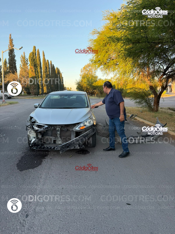 Delicias. - Cera de las 9 am, dos automovilistas tuvieron un choque en la intersección del boulevard CONAI y Av. 20 poniente, debido a que uno de ellos no se incorporó correctamente a la vialidad por hacerlo sin precaución.