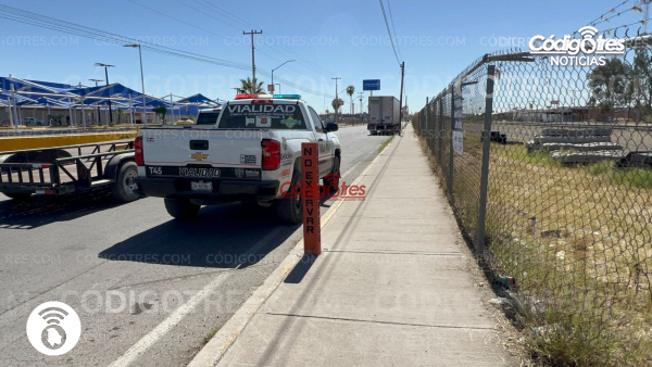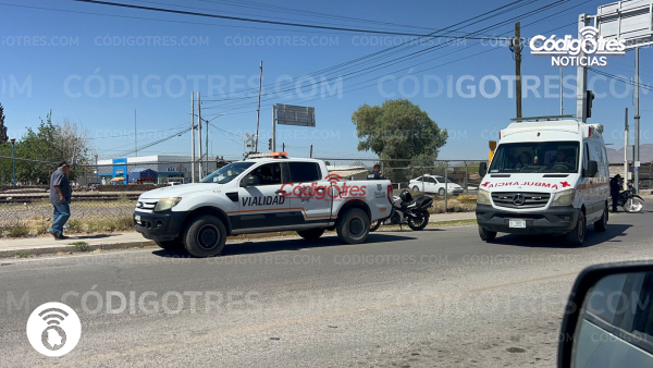 Delicias. – Un motociclista se impactó contra un tráiler en la intersección de la Av. Ferrocarril y Av. Tecnológico, resultando de milagro casi ileso.