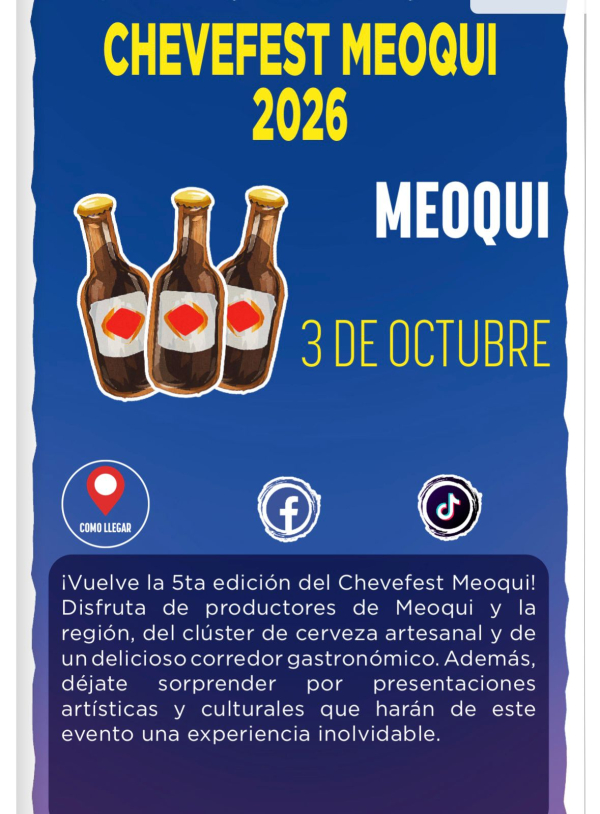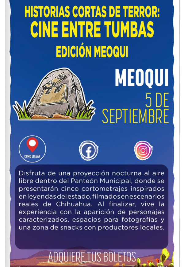 El municipio de Meoqui forma parte del calendario estatal “Chihuahua es Para Ti, Conócelo” 2026, con la realización de dos importantes eventos que fortalecerán el turismo y la actividad económica en la región: el CheveFest, el próximo 3 de octubre, y “Historias Cortas de Terror: Cine entre Tumbas”, edición Meoqui, programado para el 5 de septiembre.