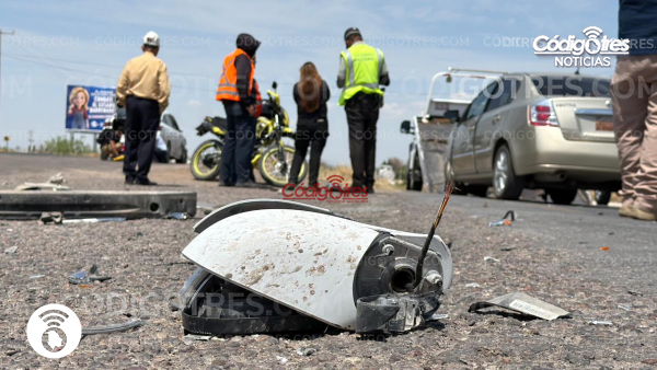 Delicias.- Hoy minutos después de la 1:00 pm, se produjo un choque en la carretera Federal 45, km 142+500, cerca del acceso a la colonia Las Terrazas.