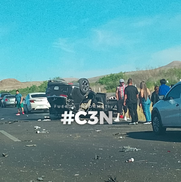 Chihuahua.- Una familia vivió momentos de terror al tener una volcadura a la altura del kilómetro 191 de la carretera que conecta Delicias con Chihuahua.