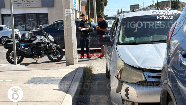 Delicias. - Una mujer que conducía un vehículo marca Mazda protagonizó un choque en la C. 7ª poniente, afuera del estacionamiento del IMSS.