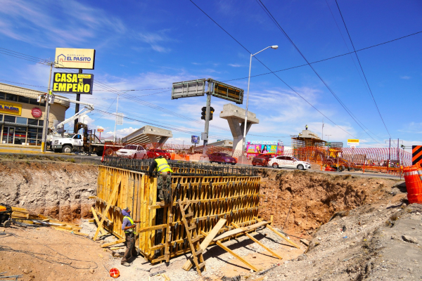 Con la ruta trazada por el alcalde Marco Bonilla de mejorar la movilidad en Chihuahua Capital, el Gobierno Municipal, a través de la Dirección de Obras Públicas, mantiene avances en la construcción del paso superior en la vialidad Los Nogales y avenida De las Industrias.